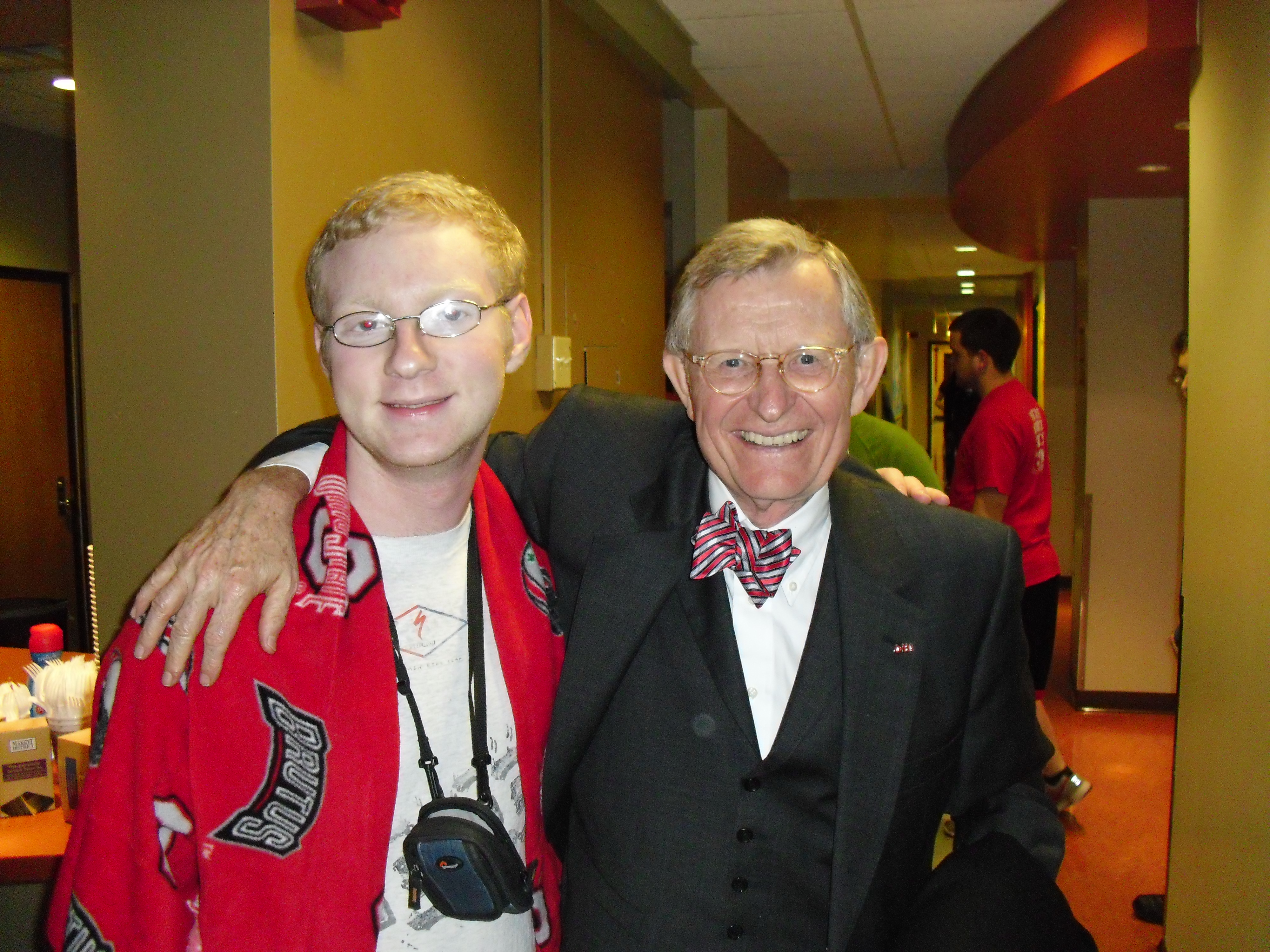 Last night started OSU’s homecoming weekend, which is always a blast on our campus. There’s a huge parade that goes right by my dorm, and I had one of the best spots along the parade route. Why was it one of the best spots? Simple; not only did I see our university’s president, Dr. E. Gordon Gee, up close when he passed by in a shiny red Corvette, I got to shake his hand when I called out to him and he noticed me! Me! Out of all the cheering people, he noticed me and shook my hand! I did wash my hand later, but I was pretty reluctant.