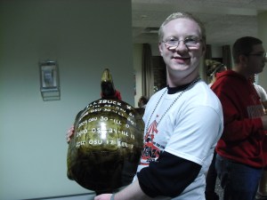 Me with the Illibuck, with the past 5 OSU-Illinois games and the scores on it’s back. Don’t I look happy?