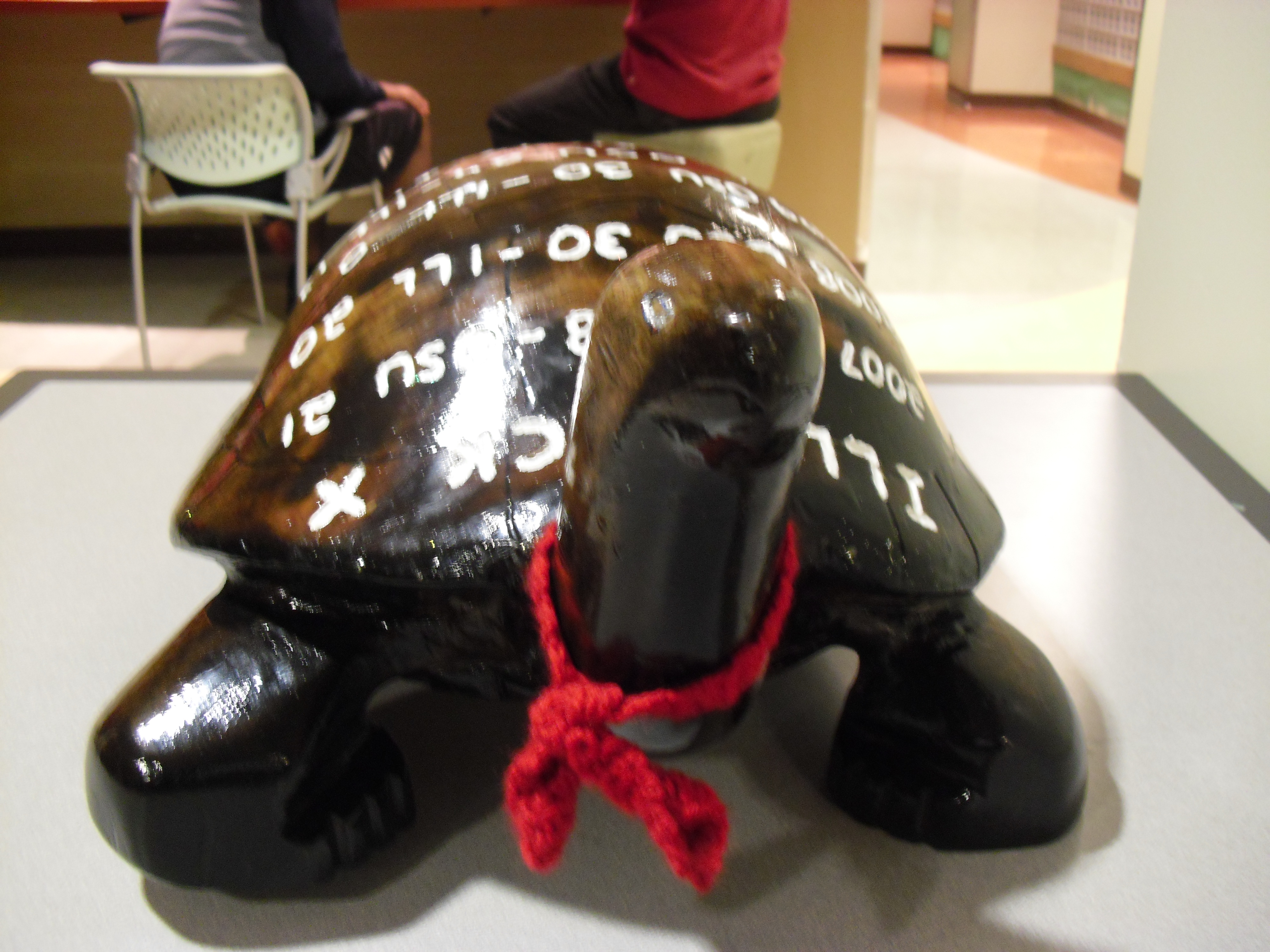 This was my second time meeting and getting to talk with President Gee, the first time happening last year when he visited my dorm during an event (photo to the right). And speaking of events at my dorm, the Illibuck trophy, a turtle-shaped trophy that is brought out during Ohio State-Illinois games and is held by whoever won the previous year’s game (pictured below), made a guest appearance at my dorm during an event involving quesadillas and a Mario Kart tournament.