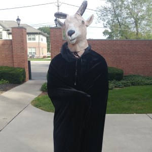 And finally, I got my Halloween costume this past Thursday. And holy crap, is it something else! As you can see, I am a goat-headed demon. You know, like the one in that creepy illustration the Church of Satan uses in a lot of their materials (aka Baphomet). I really like it, as it scares the heck out of people. And even though visibility is pretty limited (I now know what a Disneyland cast member goes through every day), I plan on keeping it. At the very least, I can use the cloak piece for other occasions and costumes.