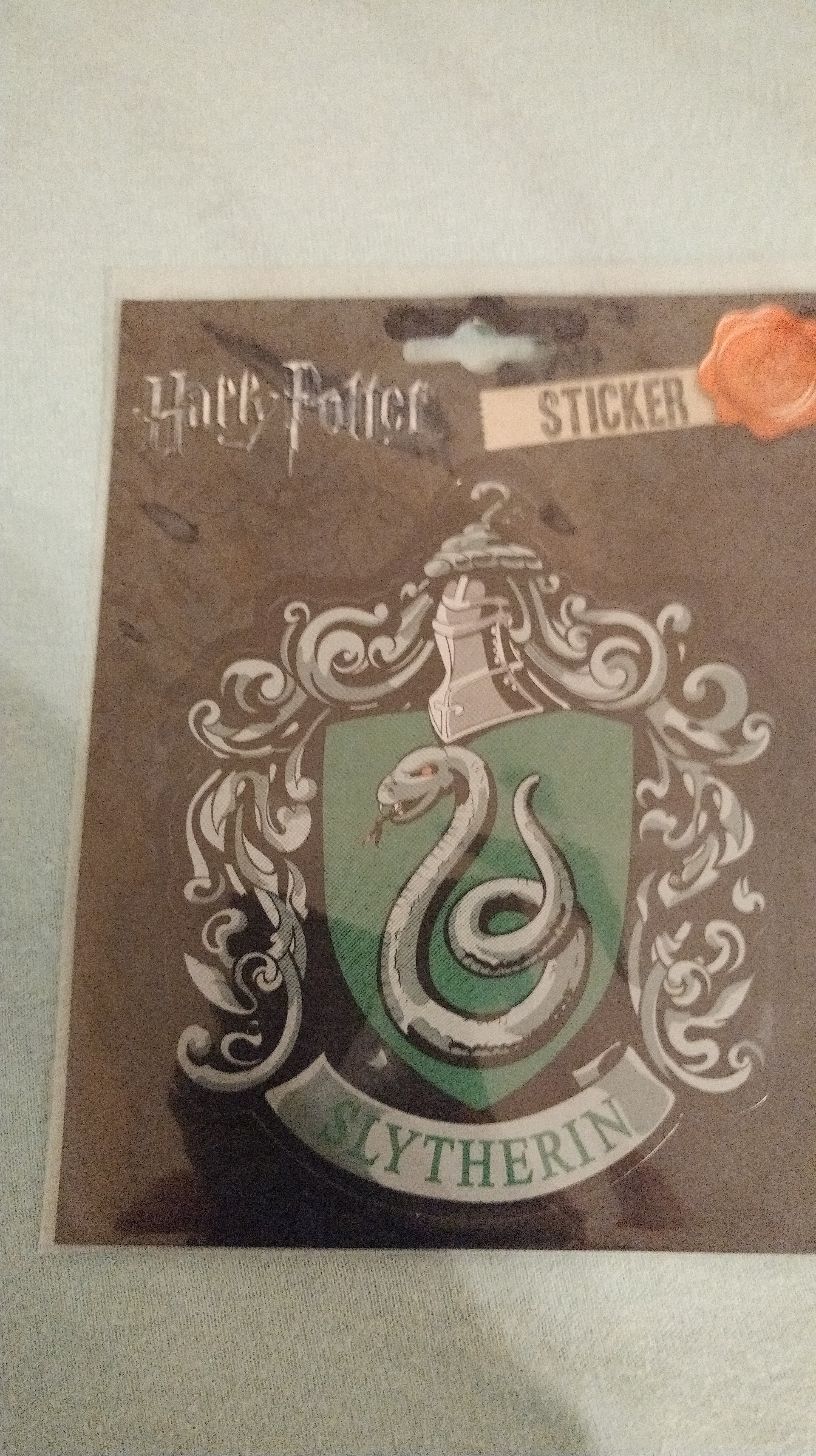 As I said in my last post, I went into a Harry Potter shop and a comic book shop on that day. I’m a Slytherin (mostly because I’m pure evil), so I bought some Slytherin gear from the Harry Potter shop. Specifically, a sticker and a tie.
