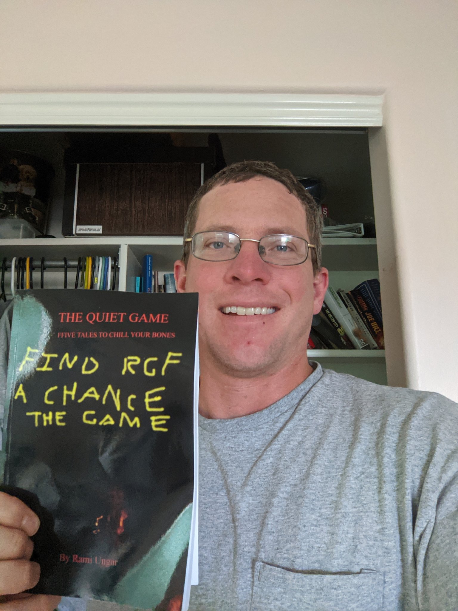 My friend and fellow author Allen Huntsman with his new copy of “The Quiet Game.” I look forward to hearing his thoughts.