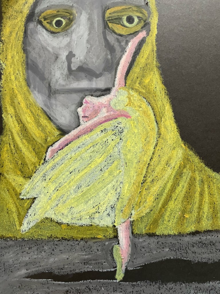 This oil painting by friend and colleague Iseult Murphy is based on “The Dedication of the High Priestess.” The story is an excellent example of a story starting in media res.