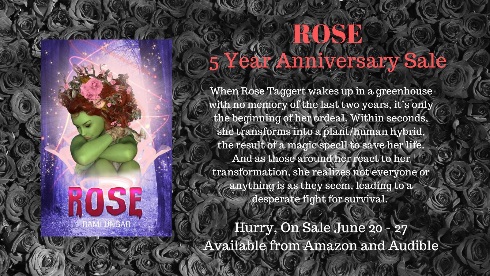 Anyway, if you’re at all interested in checking out Rose, guess what? In honor of the five-year anniversary, Rose is on sale from today through June 27th! So, whether you prefer paperbacks, ebooks, or audio books, you can grab a copy at a great price till next Thursday!