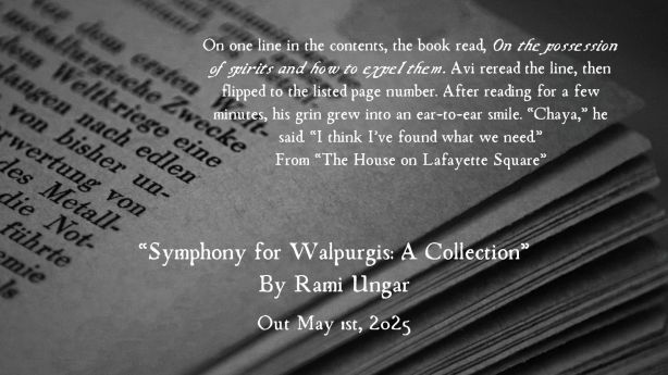 So, if you’re new here and are unfamiliar, “Symphony for Walpurgis” is my latest book, a collection of nine novelettes (stories that are longer than short stories but much shorter than novels), four previously published and five original. They range from stories of cryptids and giant bats (“Famous,” “Disillusionment and Trauma Sometimes Go Hand-in-Hand”), to malevolent spirits (“The House on Lafayette Square,” “The Parasite Man”) and even a Jewish exorcism (again, “The House on Lafayette Square”). It came out on May 1st, AKA Walpurgis Night, when witches hold their get-togethers, which means it’s officially three months old.
