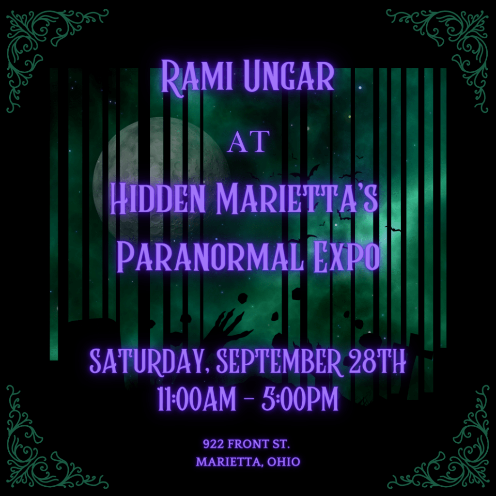So, first off, this coming weekend, on Saturday, September 28th, 2024, I will be attending the Hidden Marietta Paranormal Expo. It’s going to be at the Washington County Fairgrounds in Marietta, OH, so if you’re in the area, stop by. It’s a really amazing expo in a beautiful and historic town, and I’ll be selling books and doing Tarot readings while I’m there. If you can stop by, please do. I would be happy to see you. Here’s the website if you would like to learn more.