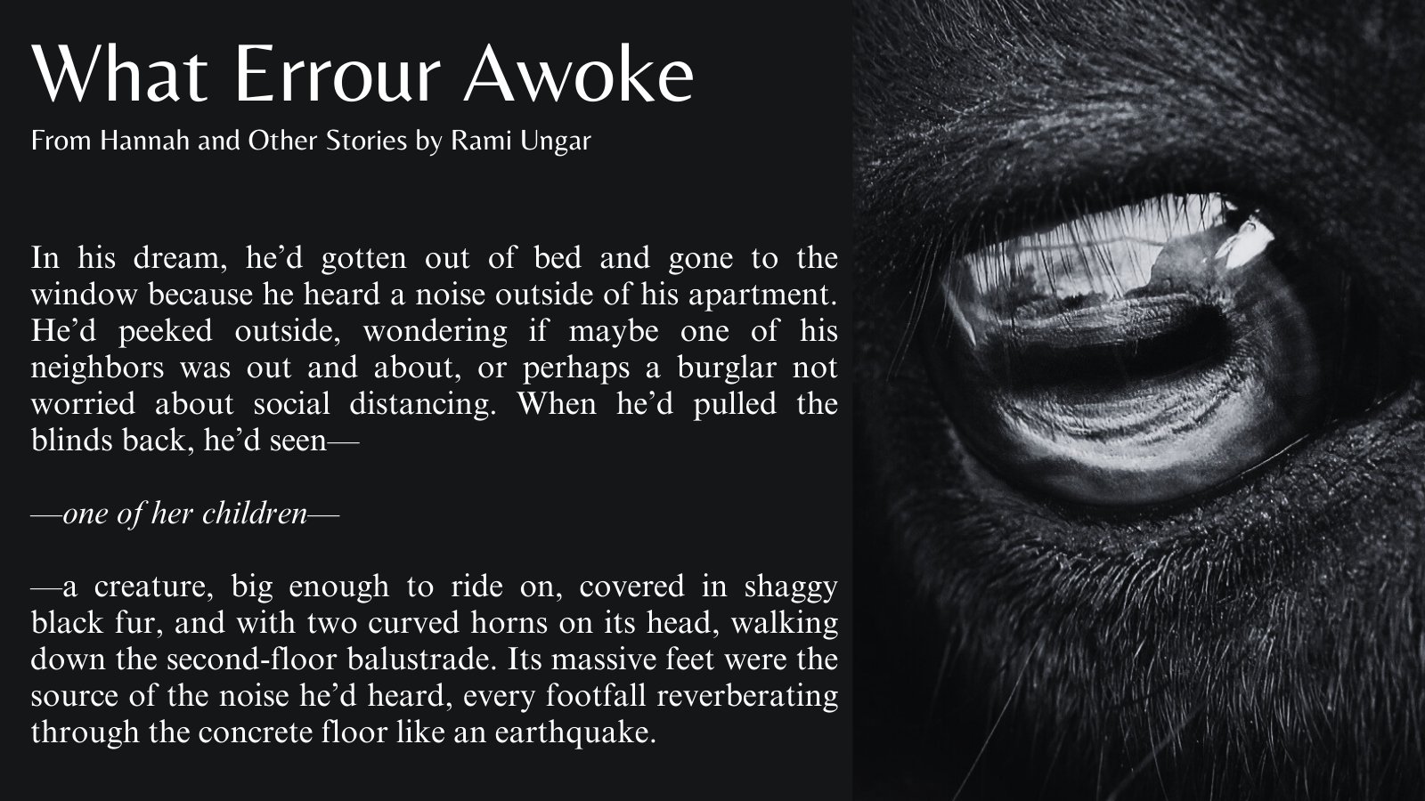 First, we have “What Errour Awoke,” which is probably my favorite story to read from:
