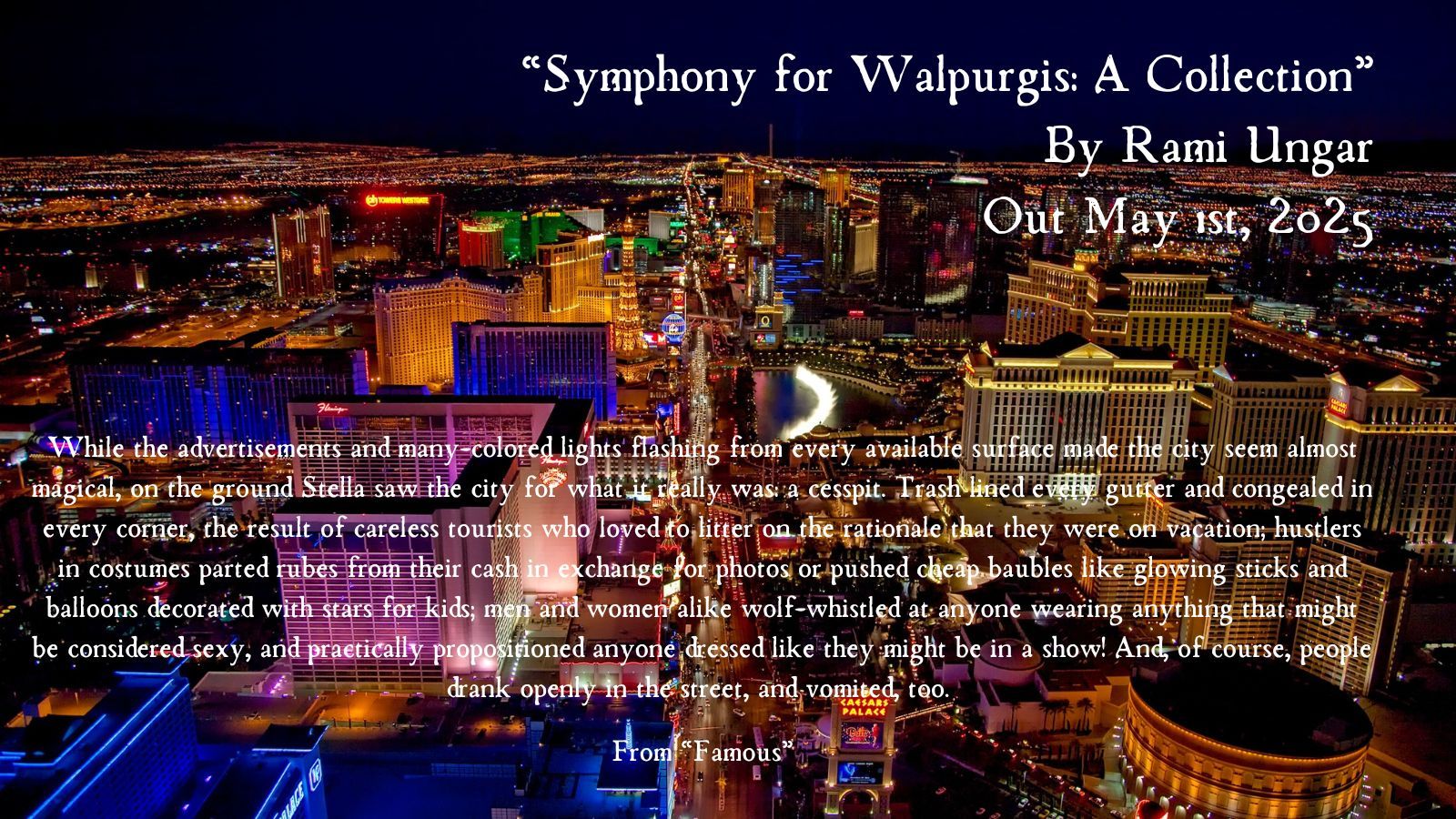 What’s the difference between humans and monsters? Is there a fine line, or is it more gray and blurred? Rami Ungar, author of Rose and Hannah and Other Stories, explores this question in his latest collection, Symphony for Walpurgis. From legendary cryptids to malevolent spirits and from Ohio in the 1950s to modern-day California, readers will be treated to nine terrifying stories of the weird and macabre. So settle down and be prepared. For you have bought your ticket to Symphony for Walpurgis.